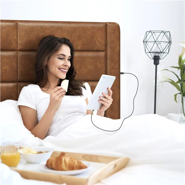 • Integrated Power Solution: Designed for your charging needs, a built-in power outlet on the side of this upholstered bed spares you from hiding the messy and dusty power station. The certified power adapter has a 6.5 ft long round wire, two USB, and two AC outlets.