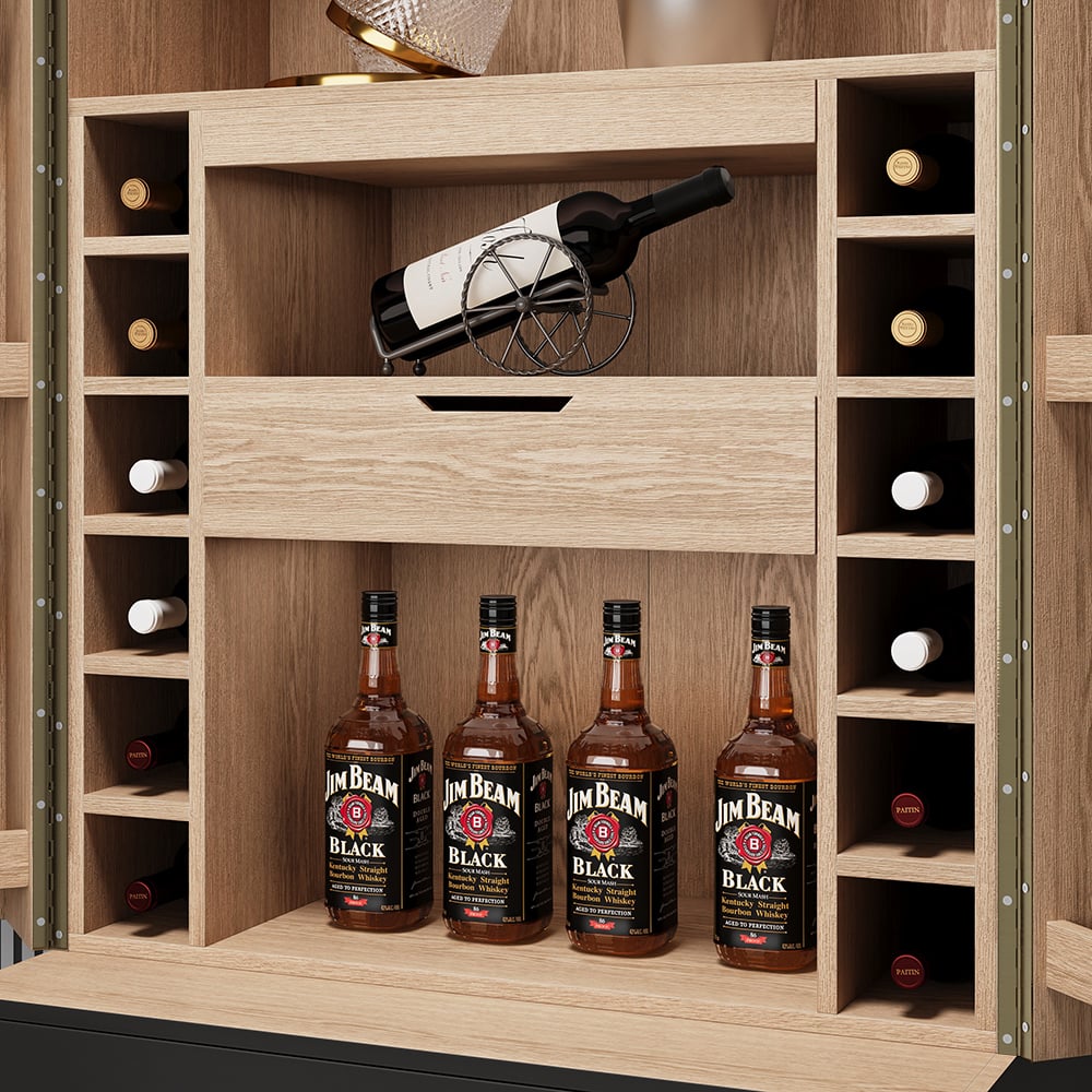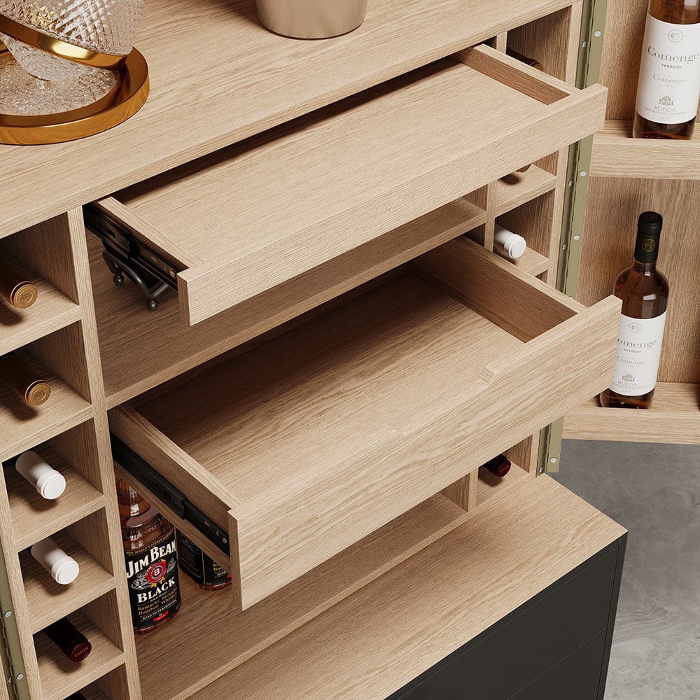 Blending seamlessly with your existing décor, this wine cabinet will bring out the best in your interior space. It features fluted surface detail that will be the perfect piece for your well-curated aesthetic. Two doors open to reveal a roomy interior with lots of storage for glasses and bottles. Made of quality MDF and durable stainless steel, this cabinet ensures long-term use.
