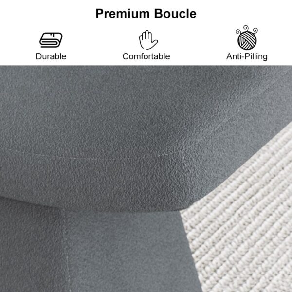 Elevate your living space with this minimalist yet sophisticated footstool. Featuring a curved seat and sturdy base wrapped in soft boucle fabric, it blends comfort and style. Its versatile design makes it a perfect accent piece for bedrooms, living rooms, or entryways.
