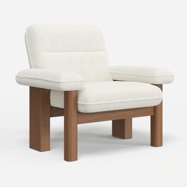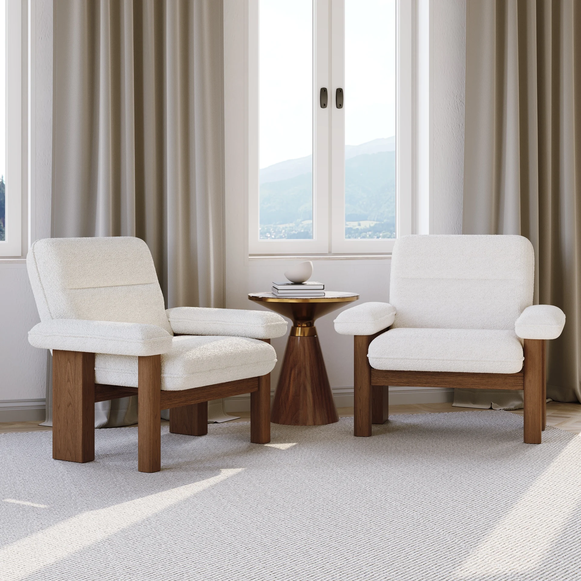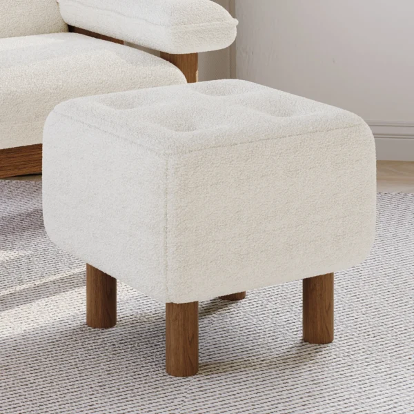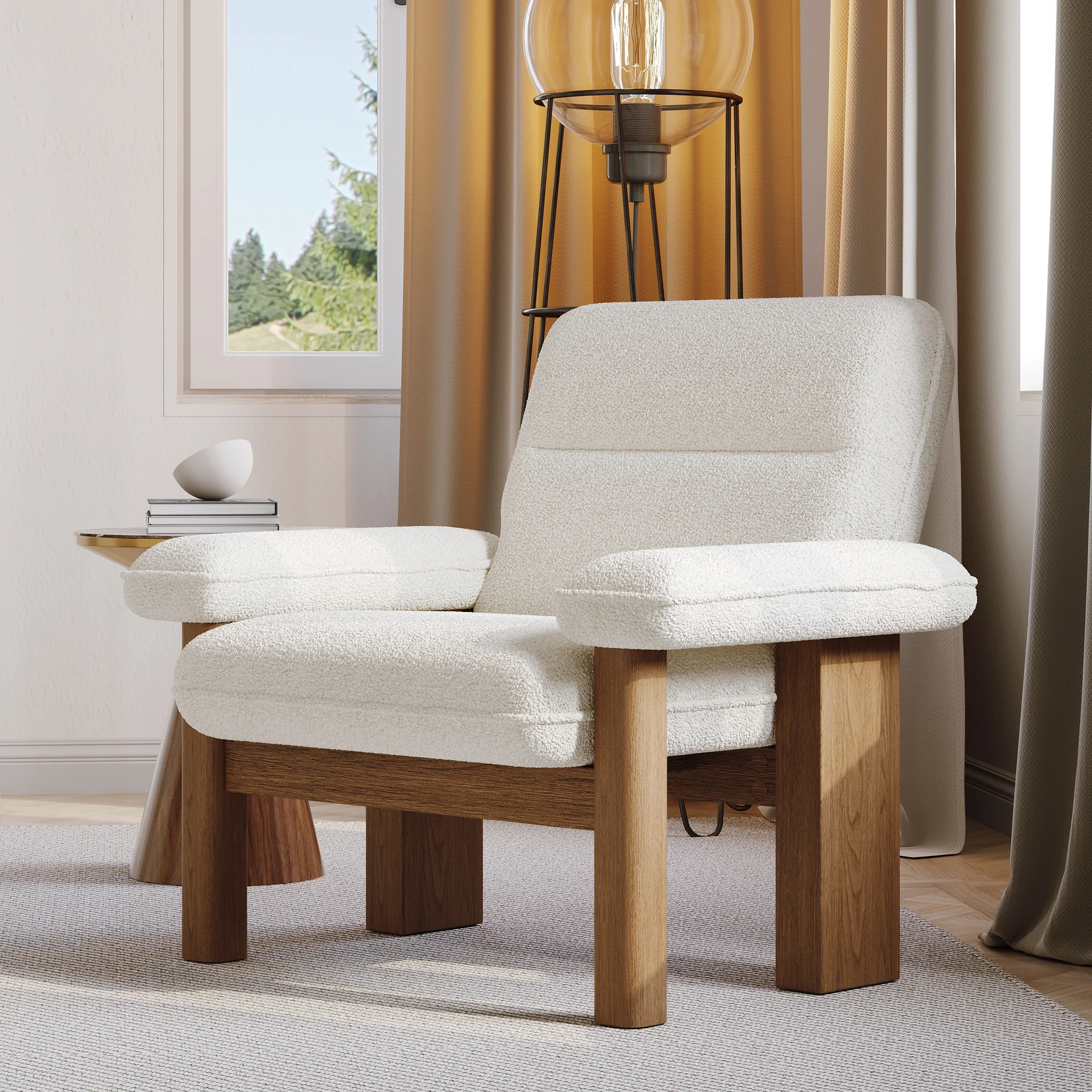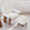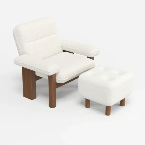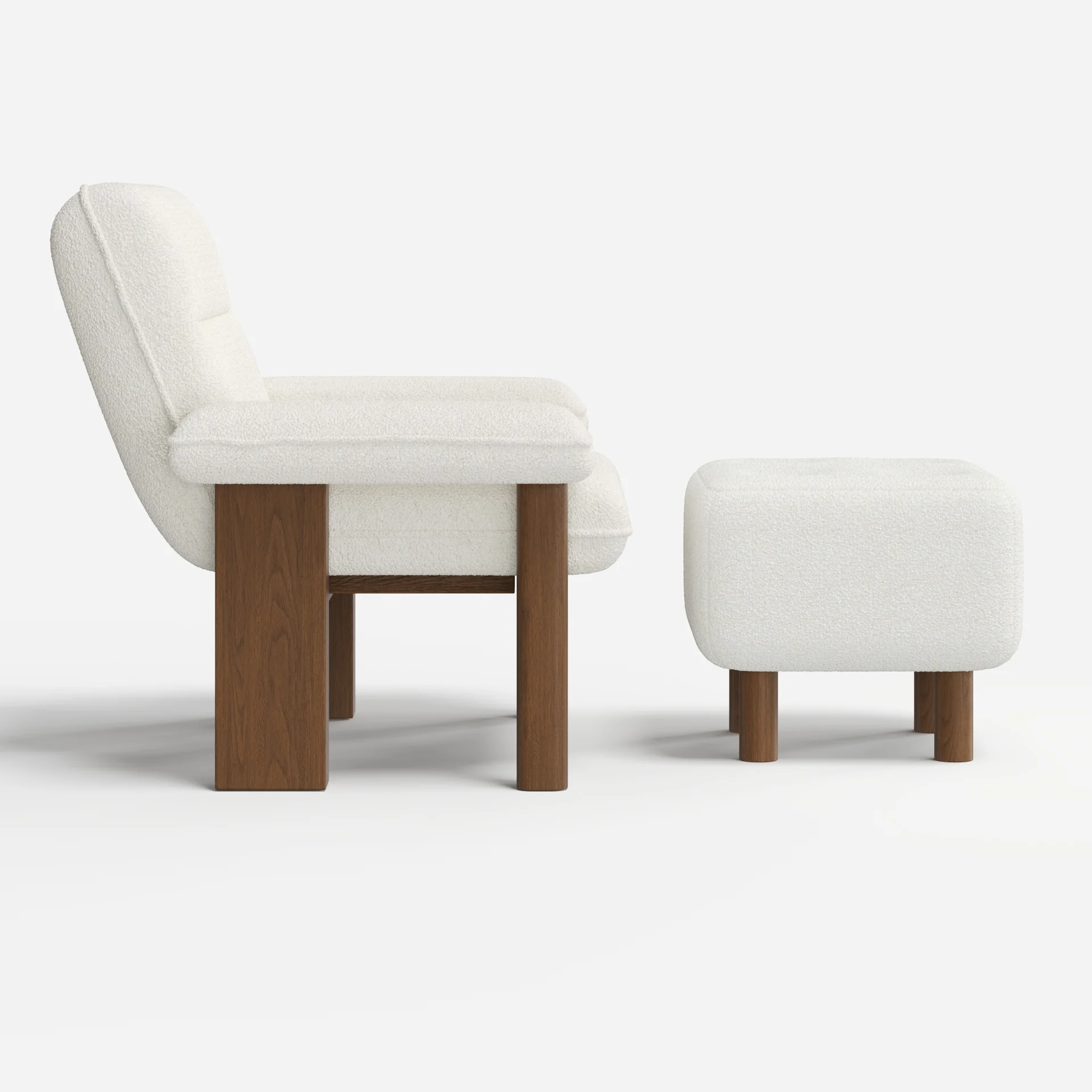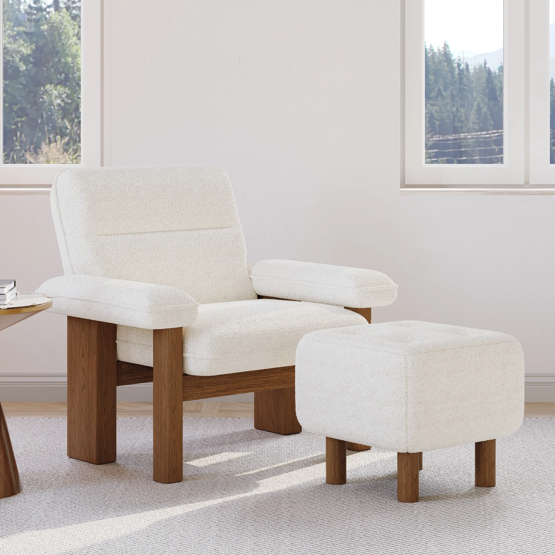 Sink into comfort with this boucle lounge chair and ottoman set. Its plush texture and warm wood frame create a soothing, inviting vibe perfect for relaxing moments.