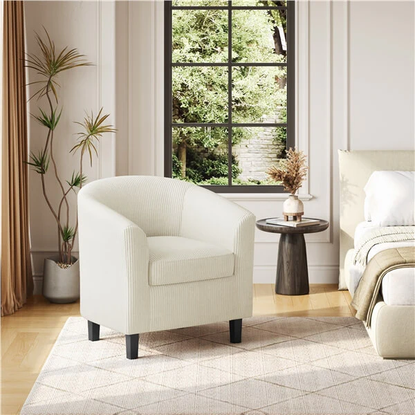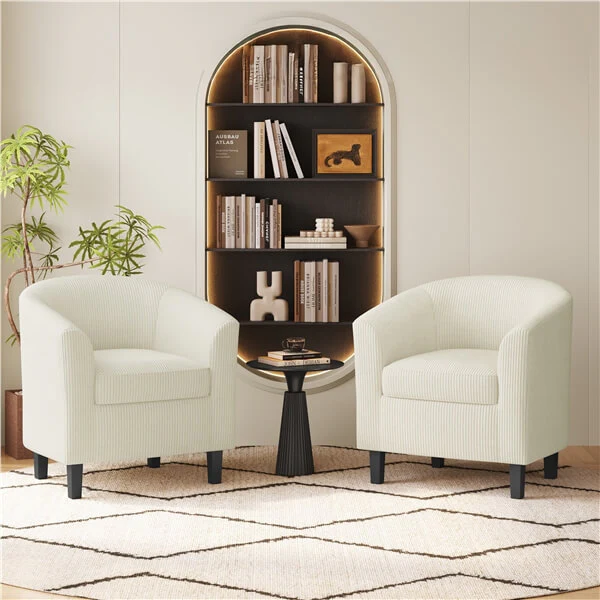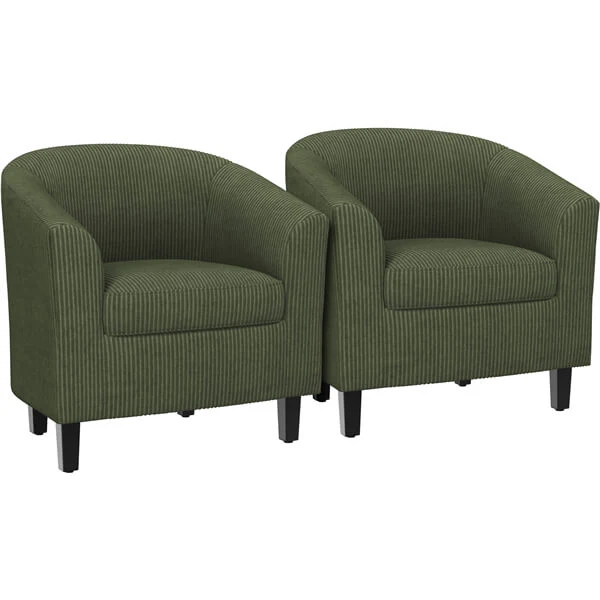 Set of 2 Corduroy Fabric Club Chairs Accent Arm Chairs Upholstered Barrel Chaisr Contemporary Style for Living Room Bedroom Reception Room