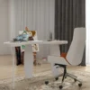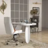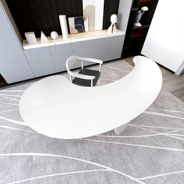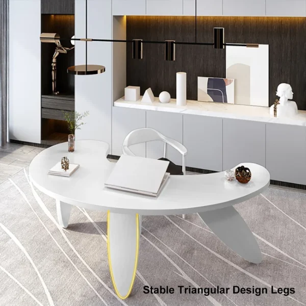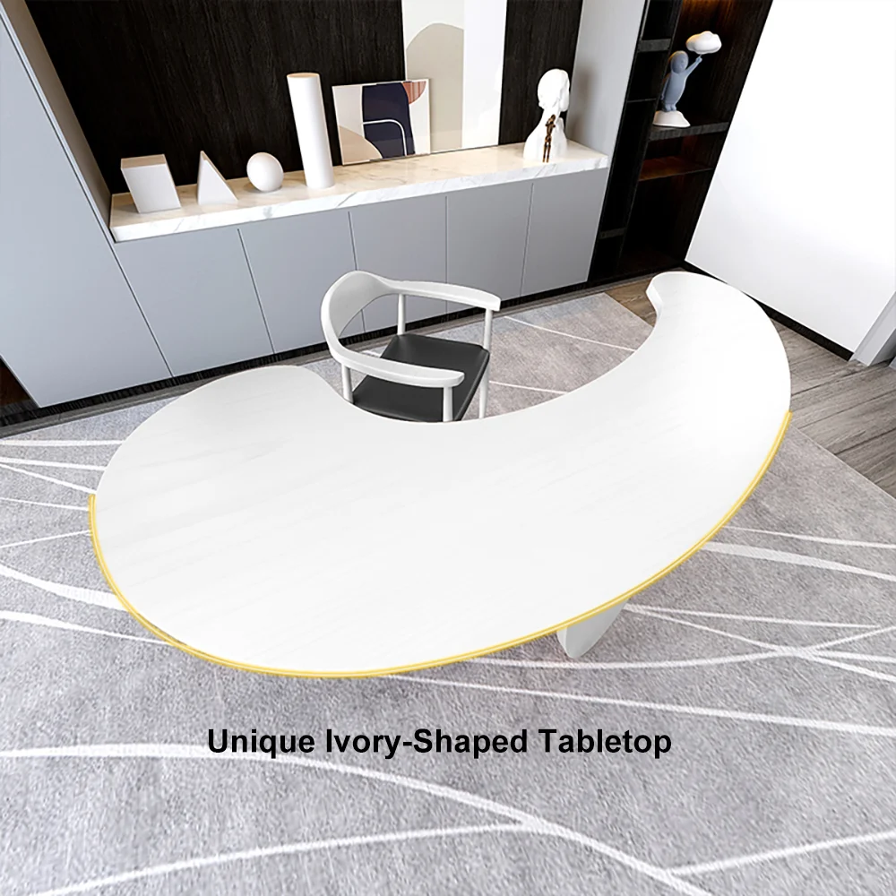 Curved Front Executive Desk, Modern 55″ White Wood Office Desk with 3 Oval Legs