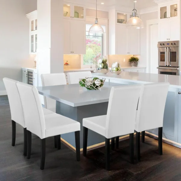 - Faux Leather Seat: These modern kitchen chairs have wear-proof faux leather seats, which not only simplify the cleaning but also increase the texture. It is easy to clean them up and looks high-end with a faux leather surface