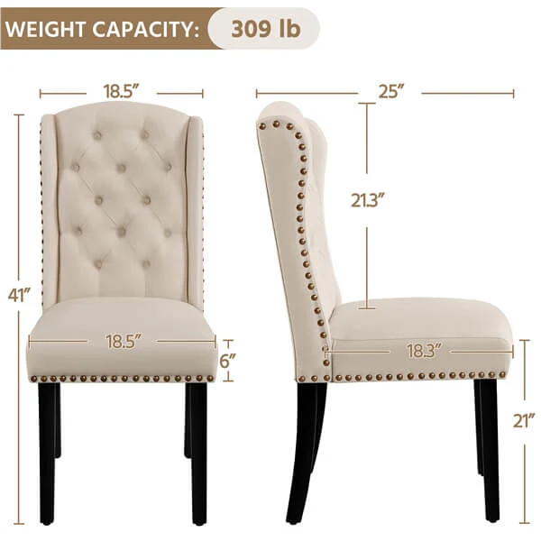 - Sturdy Construction: Our dining chairs are crafted of a solid wood frame and rubber wood legs to ensure a high weight capacity of 140 kg / 309 lb. The durable polyester fabrics are trimmed with bronze-finish studs for a smoother and tighter surface.