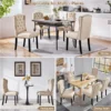- Contemporary & Classic: This high-end upholstered chair set showcases a traditional style with wear-resistant fabric, bronze-finished nailhead trims, and black wooden legs, which perfectly complete and decorate your dining room. Metallic studs adorn the backrest and seat, a superb detail that adds the classical look of the chair.