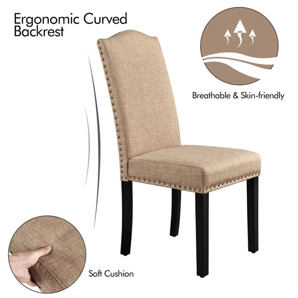 - CLASSIC DESIGN: Our dining chairs are featured with simple style, soft fabric and copper-colored nailhead perfectly complete and bright up your dining room.