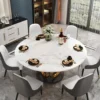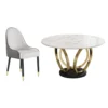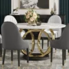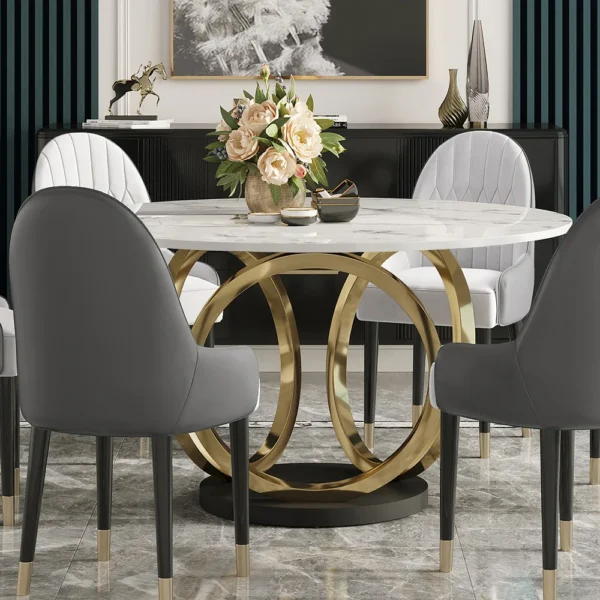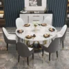 Dining Set 53″ Sintered Stone Round Dining Table White & Gray with 6 Chairs