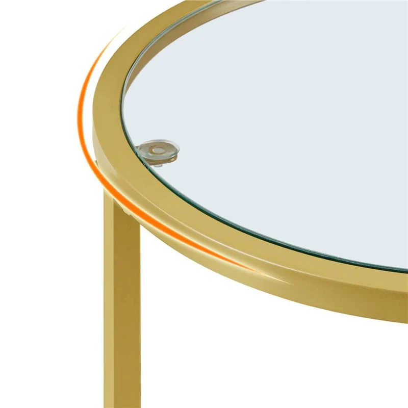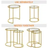 • ELEGANT & LUXURY : The mix of matte gold/black metal frame and circular glass top makes this side table set an eye-catching piece in your room, bringing a touch of luxury charm to your home decors