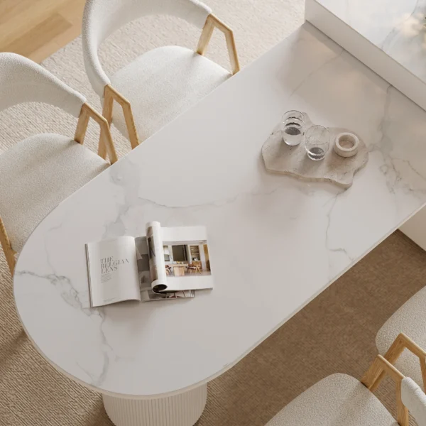 Marble-pattern top resists heat, scratches, and stains for durability.