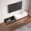 It’s a contemporary TV stand with the extendable feature to adjust the length versatile for living room layouts and fitting larger TVs. This media console is perfect for the modern living room-it’s functional, elegant in design, and has ample storage for media accessories to enhance your home’s aesthetic.