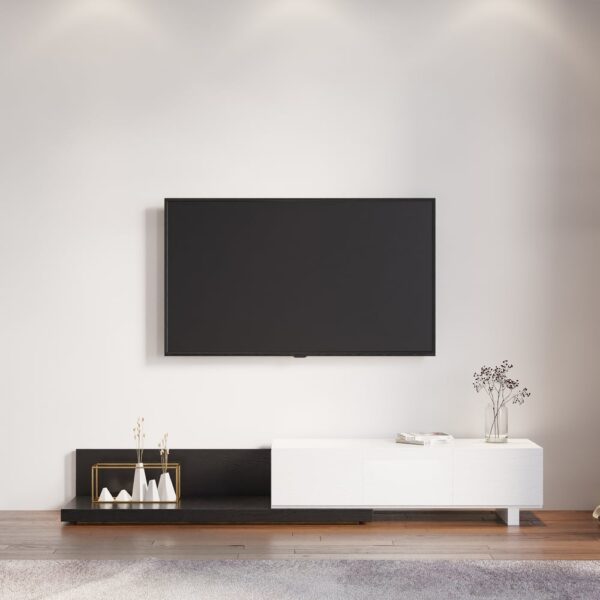 Extendable Floor White & Black TV Stand with 3 Drawers(47″-100″)