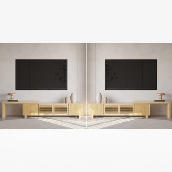 Adjust the width from compact to 82.7″ to fit your space and TV size perfectly.