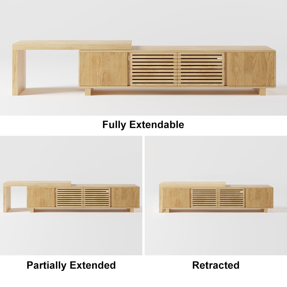 Adjust the width from compact to 82.7″ to fit your space and TV size perfectly.