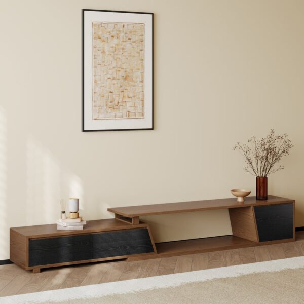 Fero Black & Walnut Extendable TV Stand with 3 Drawers(71″-110″)