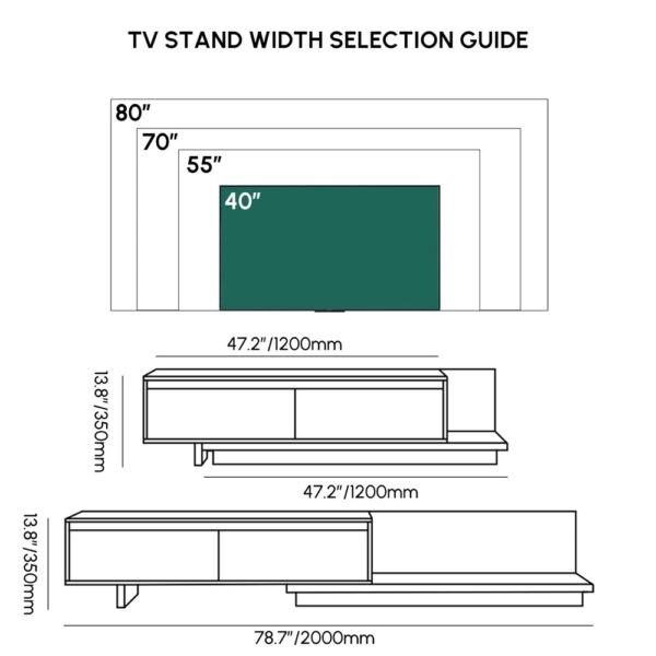 Extendable design adjusts from space-saving 47.2″ to entertainment-ready 78.7″ for flexible room configurations