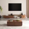 Fero TV stand with extendable design and three spacious drawers that hold TVs up to 120 inches in size The extendable function offers great flexibility in fitting different room layouts This TV stand provides stylish decoration and practical storage options in the contemporary living room