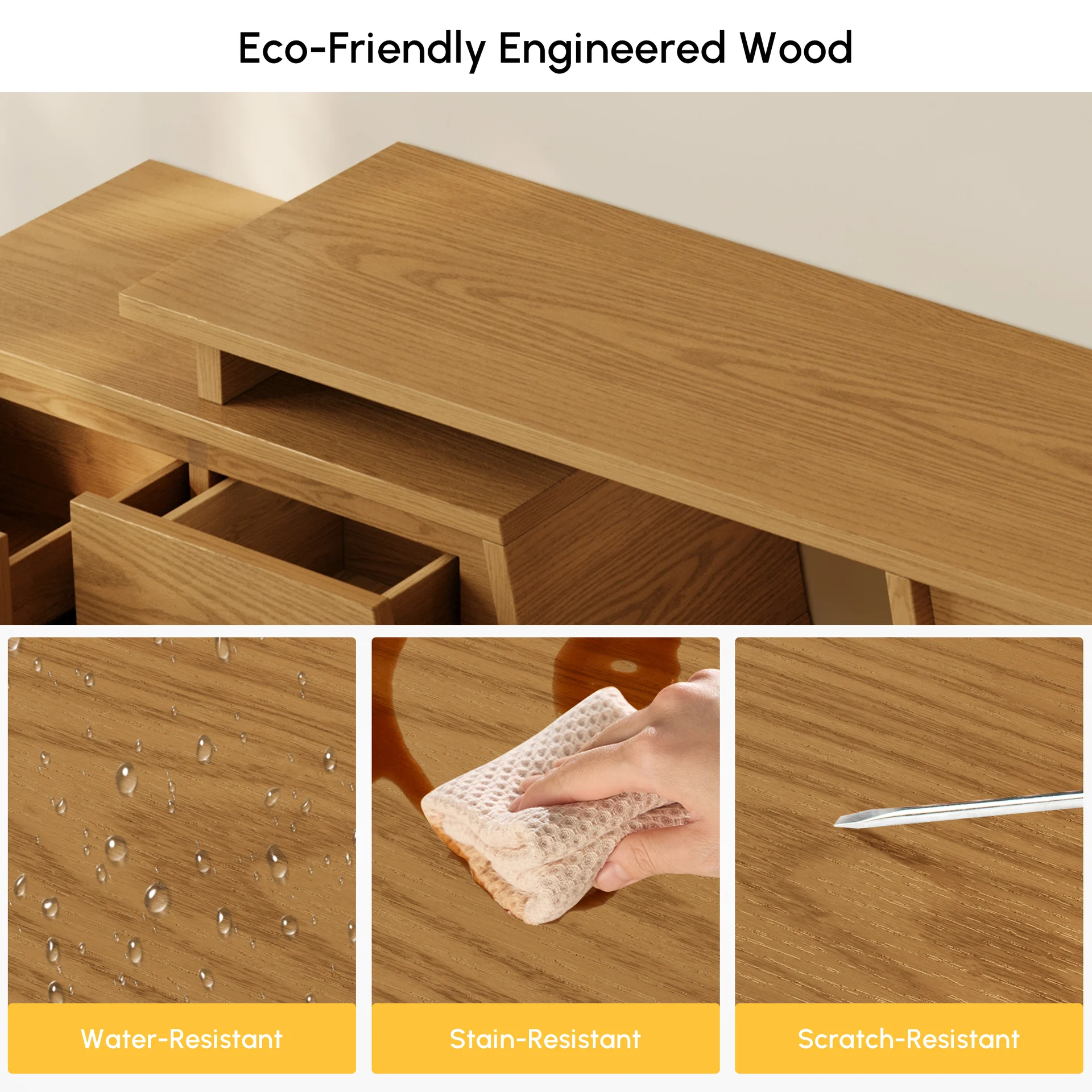 Made by premium MDF, a durable, eco-friendly high density engineered wood