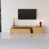 Fero TV stand features an extendable design and three spacious drawers, designed to complement TVs up to 110 inches in size. The extendable function provides great flexibility to fit various room layouts. This TV stand offers stylish decoration and practical storage options for contemporary living rooms. Note: The central storage area is not suitable for items weighing more than 22 lbs (10 kg).