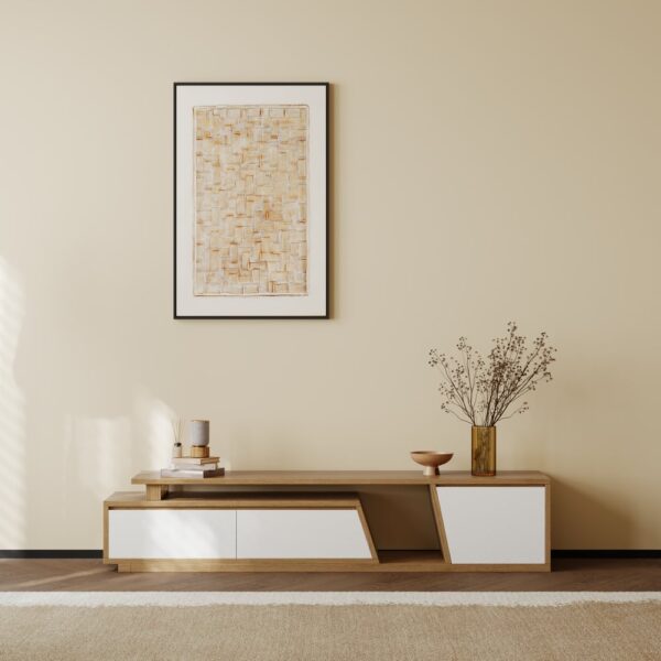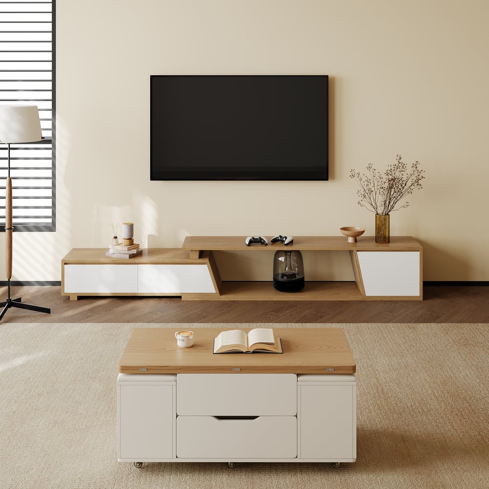 Fero White & Natural Extendable TV Stand with 3 Drawers(71″-110″)