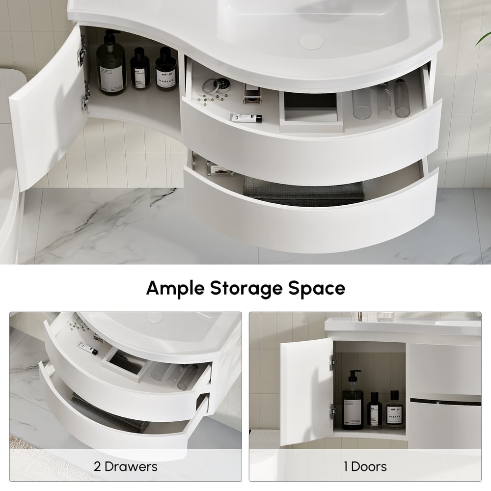 Smart Storage: 2 Soft-Close Drawers + 1 Door. Smooth, quiet storage for toiletries, towels, and essentials—designed for daily convenience.