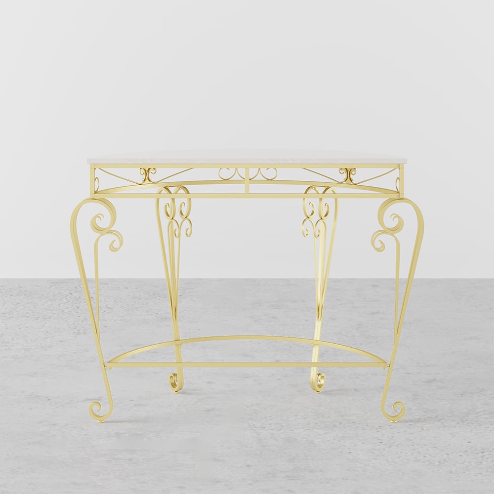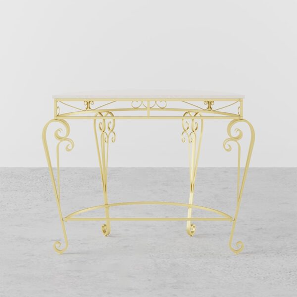 The half-circle shape of this French Country and domestic console table gives it a modern feel. The MDF top is ideal for displaying framed family photographs, potted plants, and other decorative items. Lightweight and beautiful, it is made of robust metal with a gold finish and has a traditional aesthetic ideal for any house. Neither too huge nor too little, it provides the ideal size for decorating a small area in a semi-circle shape. Decorate with plants, periodicals, or even books that are still open. It’s a great way to add a little flair to any environment, which is not a big deal.