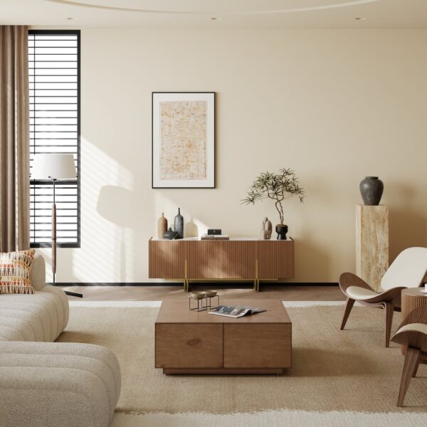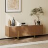 Grovyn TV Stand adds a modern touch to your living room with its sleek fluted design and gold stainless steel legs. The elegant sintered stone top offers both style and durability, while spacious cabinets and cable management bring a refined, clutter-free look to your space.