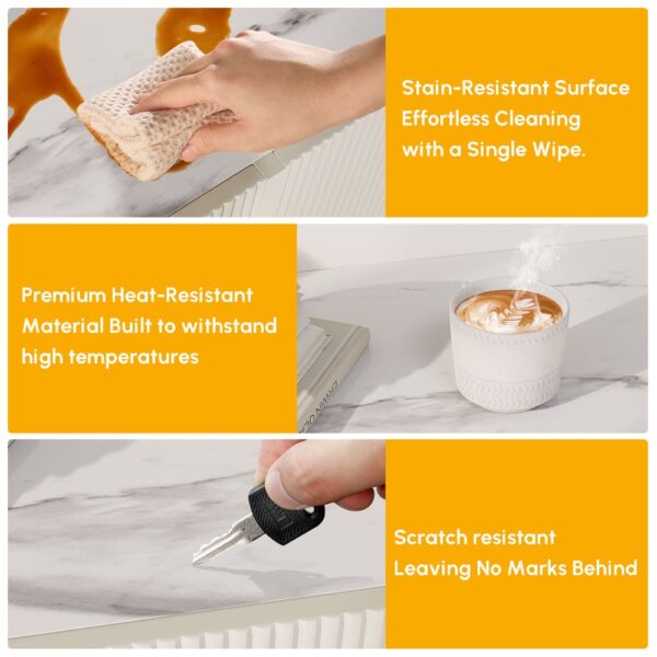 The scratch-resistant sintered stone top is easy to clean and maintains its beauty over time.