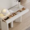 Step into a realm of sophistication and style with our Luxe Faux Leather Console Table, where opulence meets practicality in the most alluring way imaginable. Crafted to perfection, this console table is not just furniture; it’s a statement piece that will elevate your home to new heights of luxury.