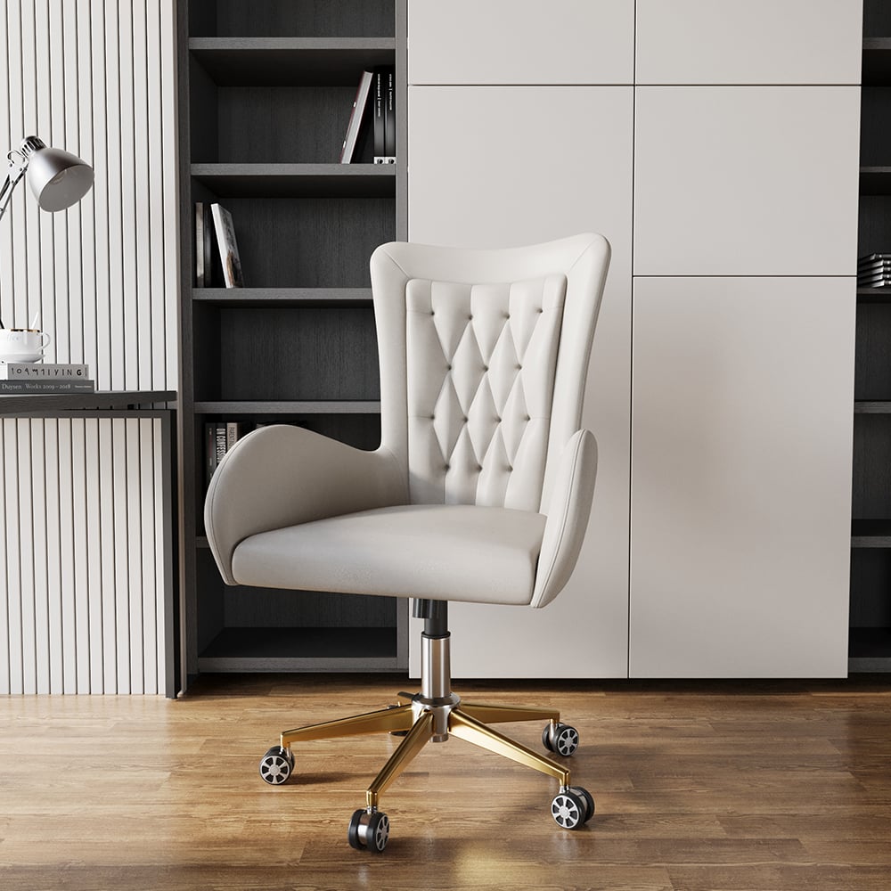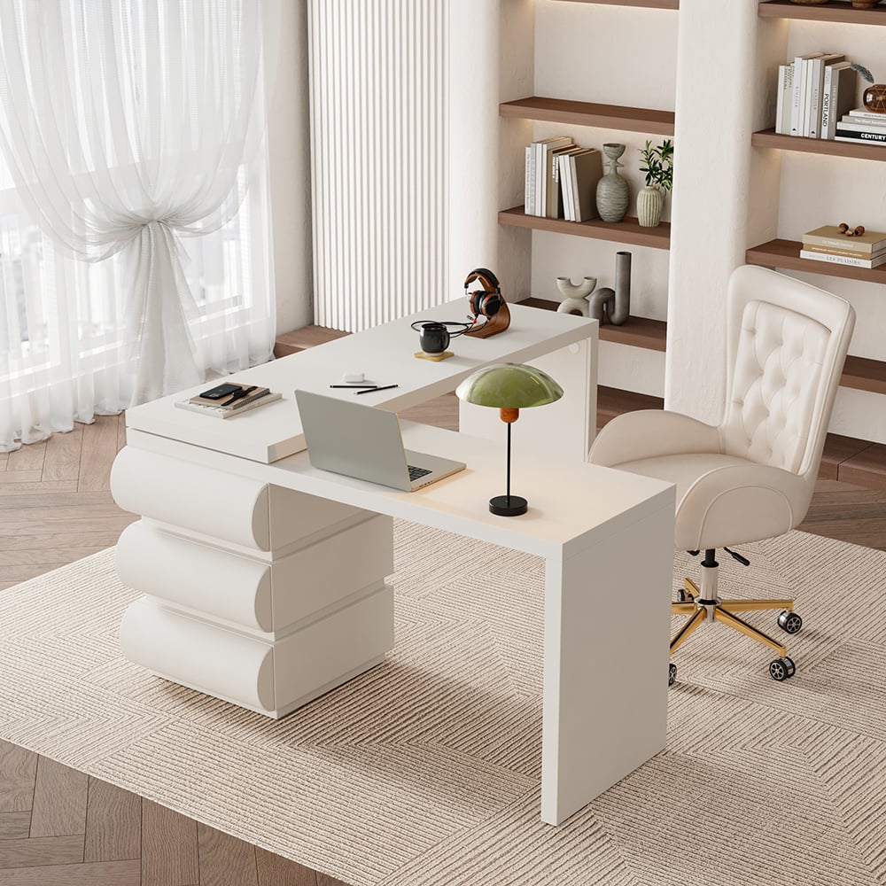 [Humply Cream Computer Desk] Get rid of tedious design, the computer table brings a feel of modern cream style to the room.