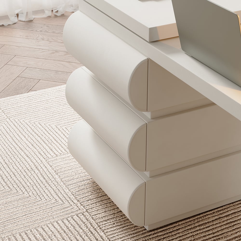 [Premium Fabric] Featured with three drawers made from three-proof leather. The smooth and luxurious PU leather upholstery not only enhances the overall aesthetic but also ensures durability and easy maintenance. The white color adds a sense of elegance and blends seamlessly with various decor styles.