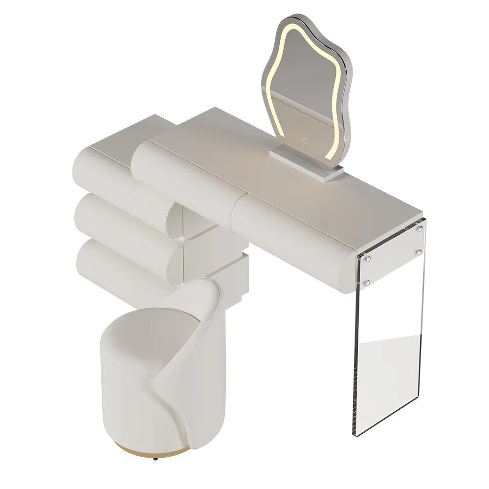 Put a lot of sophistication in your makeup routine with our lovely Vanity Makeup Set. It comes available in chic white PU leather upholstery to add flair to any room. The side cabinet also features huge drawers that provide ample storage for all manner of beauty commodities.
