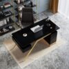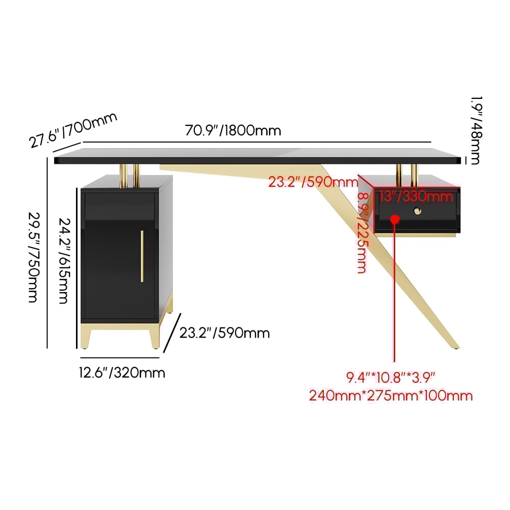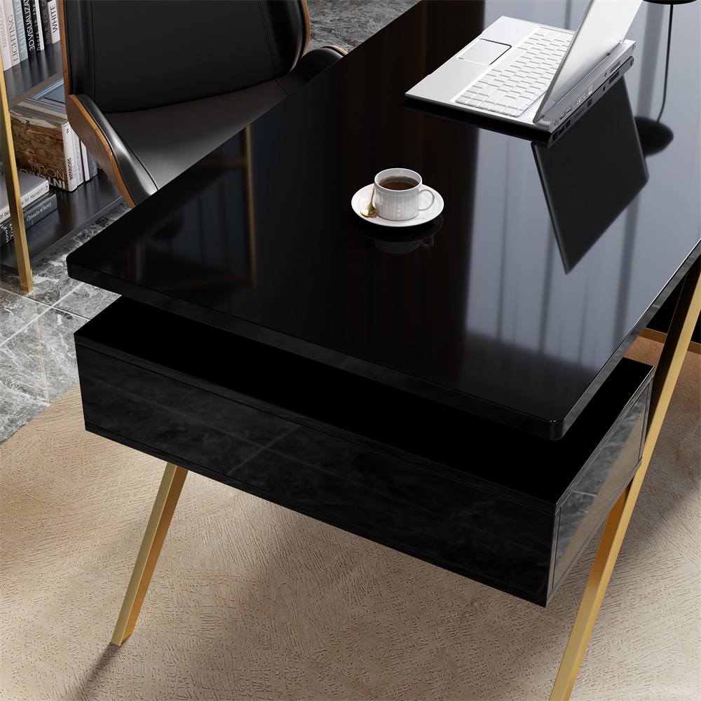 【Executive Light-Luxury Design】 Titanium gold stainless steel legs and high-gloss finish create an upscale aesthetic that elevates any office environment.