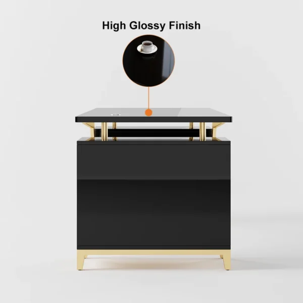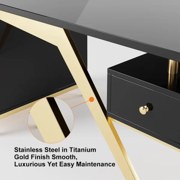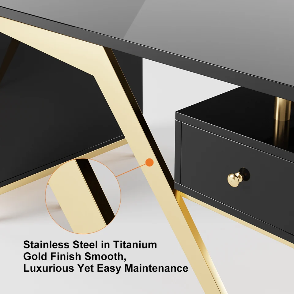 【Executive Light-Luxury Design】 Titanium gold stainless steel legs and high-gloss finish create an upscale aesthetic that elevates any office environment.