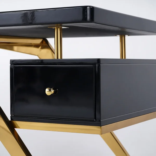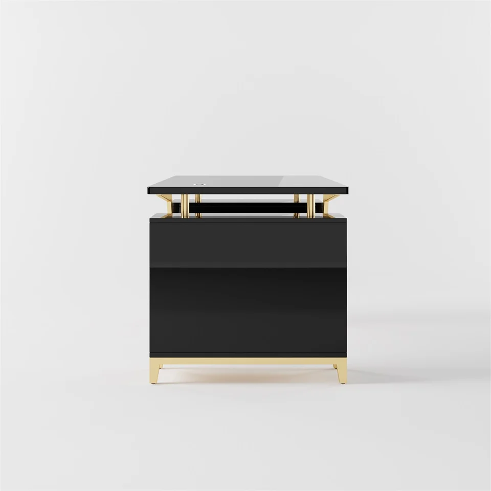 Elevate your workspace with this sleek executive desk blending modern aesthetics with practical functionality. The titanium gold stainless steel legs complement the high-gloss engineered wood surface, creating a light-luxury style perfect for contemporary offices. Featuring integrated storage and durable engineered wood construction, it offers both style and substance for discerning professionals.