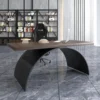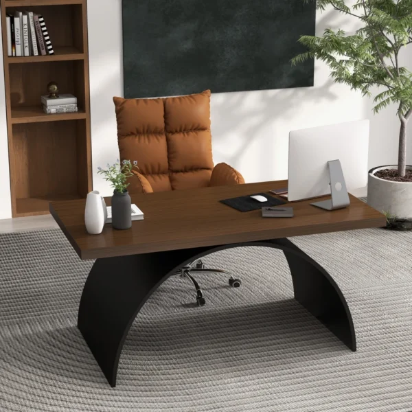 Command your workspace with this 70.9″ industrial desk featuring solid pine wood with walnut veneer and stainless steel construction. The semi-circular metal base provides exceptional stability, while the minimalist design blends rustic charm with modern functionality. Perfect for offices, studios, or home workspaces seeking durable style.
