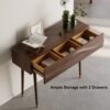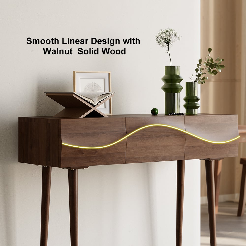 【High-Quality Materials】Solid wood console table in a rich wood finish with smooth linear design , easy to care.