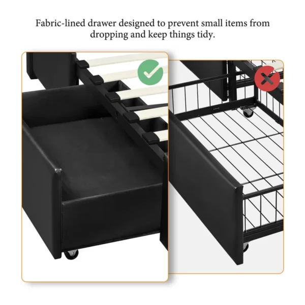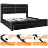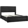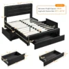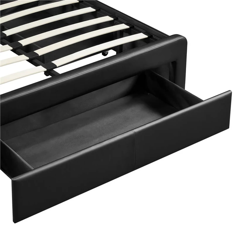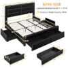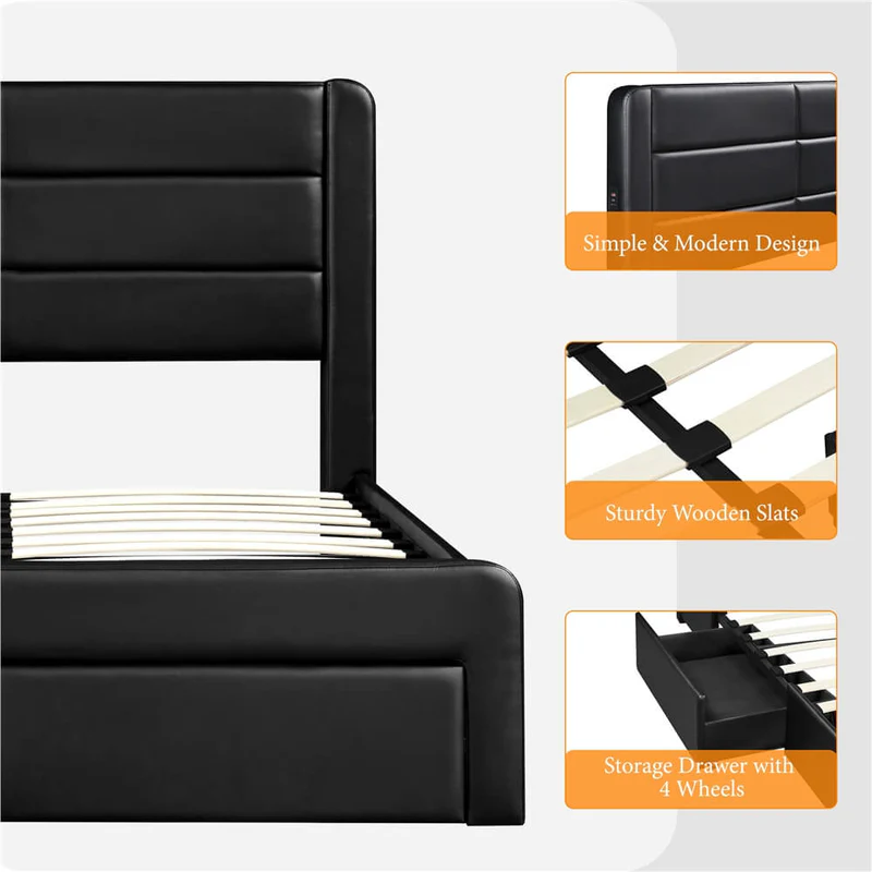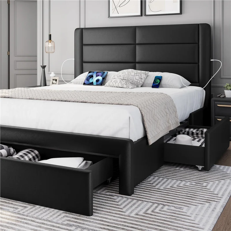 Full/Queen/King Upholstered Bed Frame with 4 Storage Drawers and Built-In USB Ports/Leather Upholstered Headboard/Underbed Storage Drawers/Mattress Foundation/Wood Slat Support/No Box Spring Needed