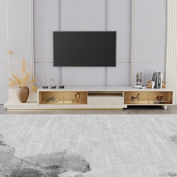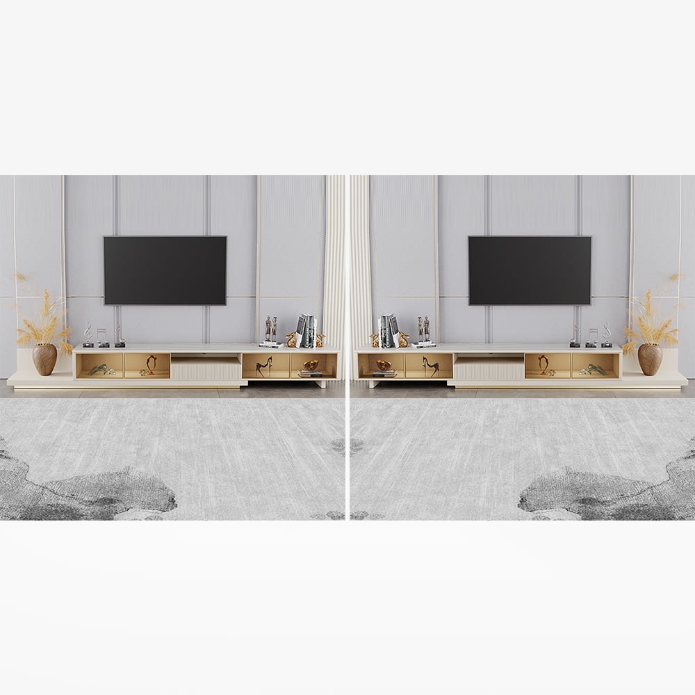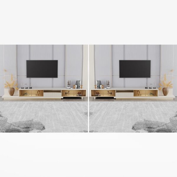Extendable Design: Adjusts from 79″ to 110″, perfect for flexible living rooms or media walls of varying sizes.