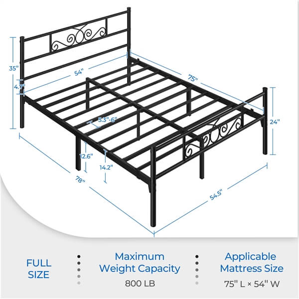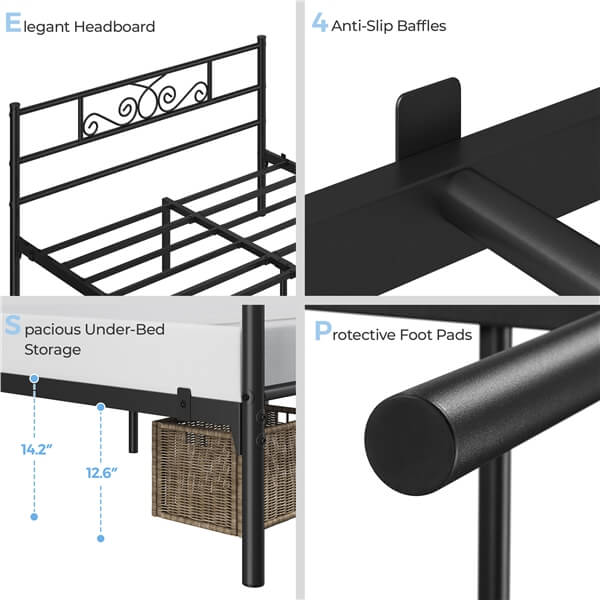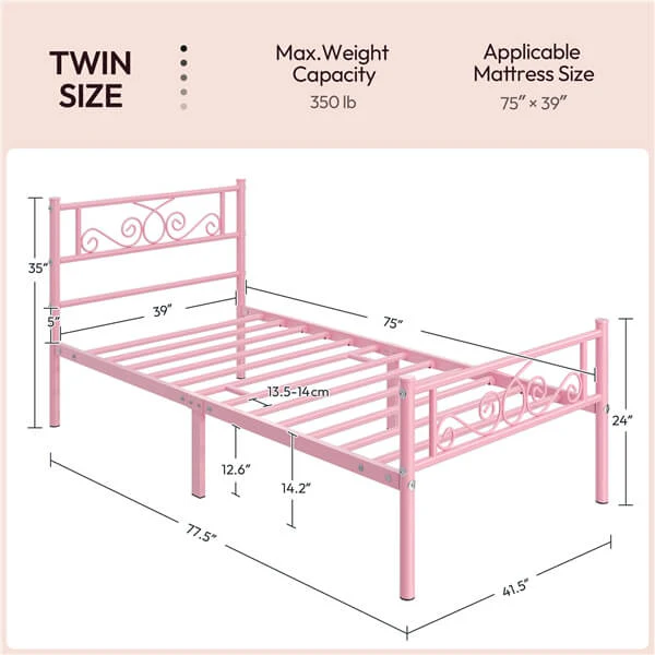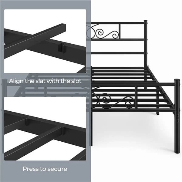 - ELEGANT HEADBOARD & FOOTBOARD: Thoughtfully designed headboard and footboard for this twin platform bed frame showcase beautiful cast metal scroll, adding warmth and elegance to your room. More, the smooth surface prevents you from scratches when passing by.