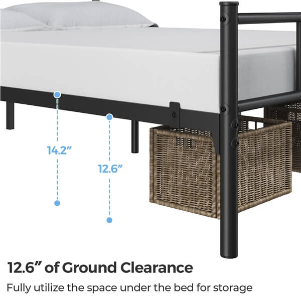 - SPACE-SAVING DESIGN & EXTRA STORAGE: This twin size bed frame does not occupy much space but brings you 12.6 inches of clearance room underneath the bed, which is perfect to store and organize your clothes, shoes, bags, suitcases and etc.