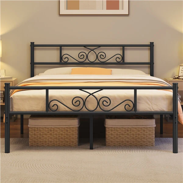 Graceful Scroll Metal-Framed Bed, Platform Bed with Headboard and Footboard for Bedrooms, Guestrooms, Dormitories