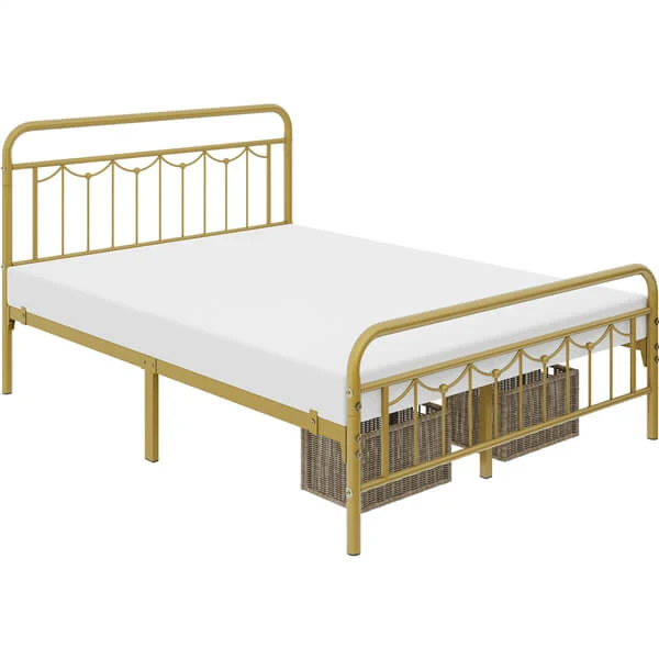 Metal Platform Bed Frame with Vintage Headboard and Footboard, Ample Under-Bed Storage, Heavy Duty Steel Slat Support, No Box Spring Needed
