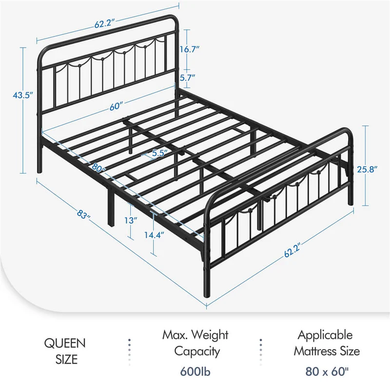• Applicable Mattress Size: 80″ L × 60″ W