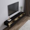 Clear up the clutter in your living room or entertainment ensemble with this mid-century floating wall-mounted entertainment center. A modern addition to fit any living space, the floating tv stand features a wall-mounted design and includes 3 drawers. Hand-finished to a surface, each cross-section displays beautiful grain and rich surface detail.