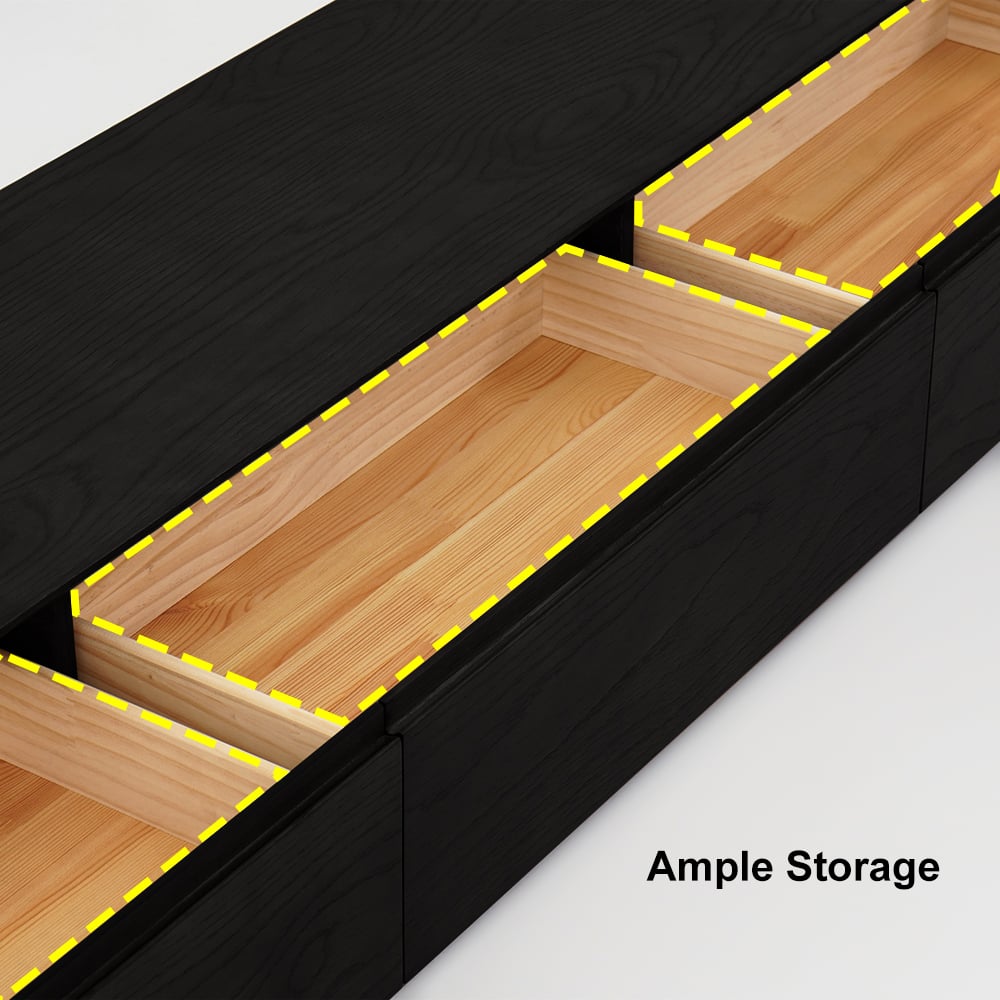 Clear up the clutter in your living room or entertainment ensemble with this mid-century floating wall-mounted entertainment center. A modern addition to fit any living space, the floating tv stand features a wall-mounted design and includes 3 drawers. Hand-finished to a surface, each cross-section displays beautiful grain and rich surface detail.