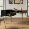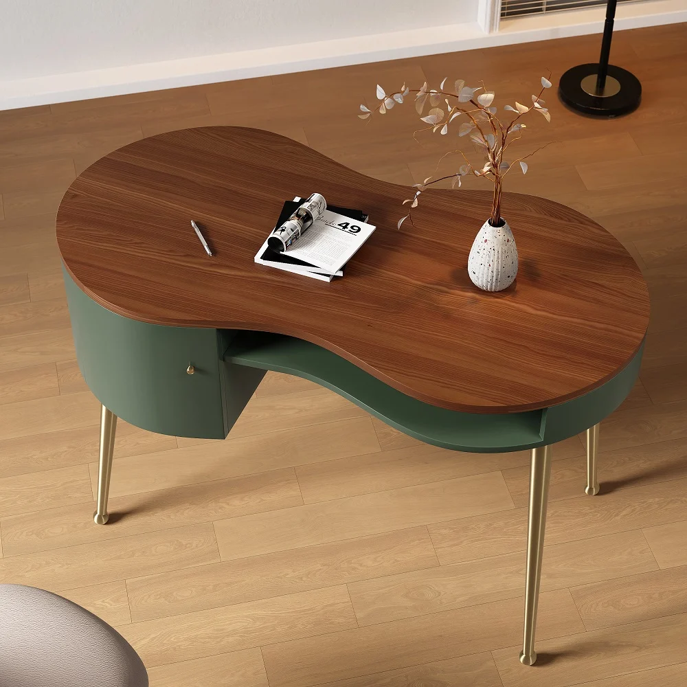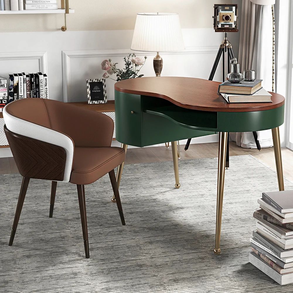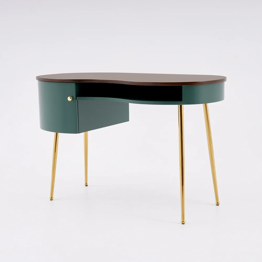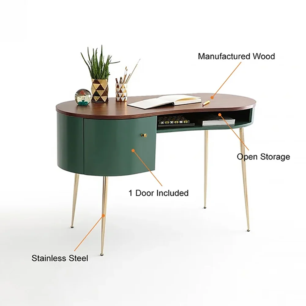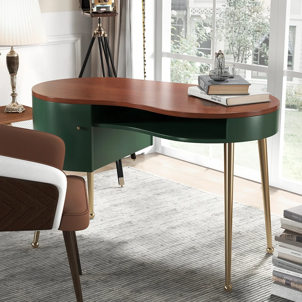 Featuring a mid-century modern design with golden accents, this exquisite office desk must be an eye-catching masterpiece in your room. The spacious desktop provides a large space for your books and decorations, while the open shelf and cabinet design offer a hidden place for organizing your essentials.