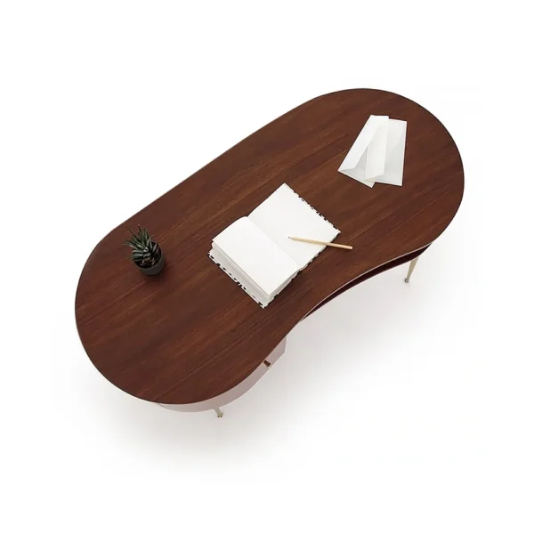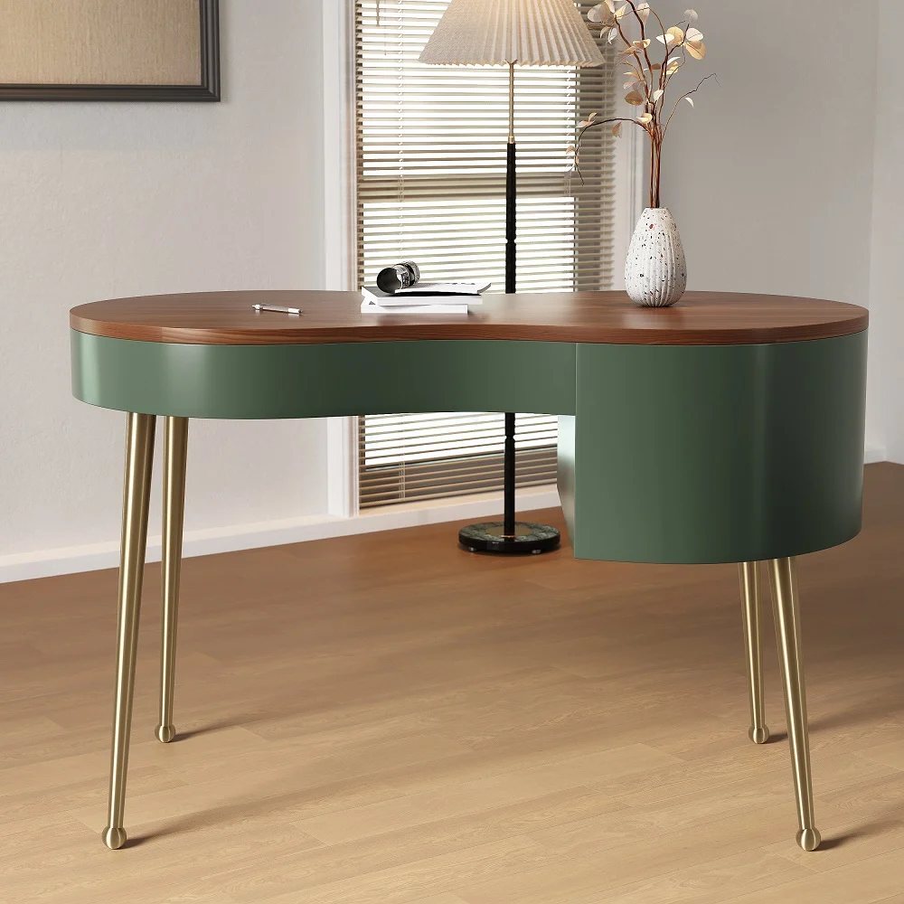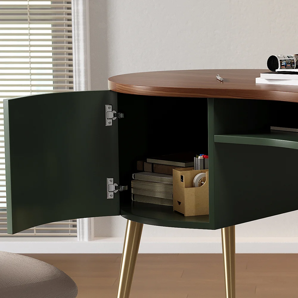 Mid-Century Modern Curved Office Desk Computer Desk with Shelf & Storage
