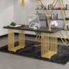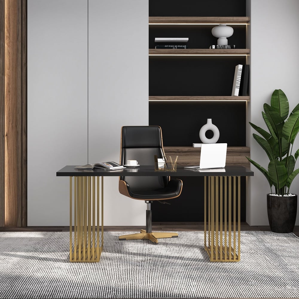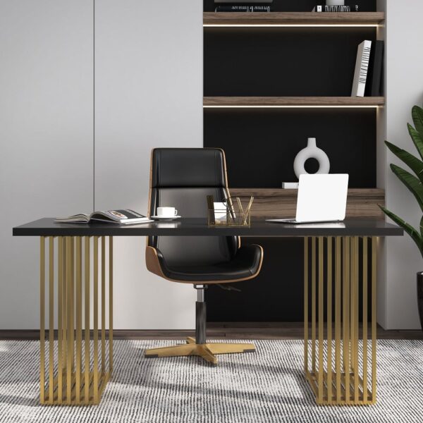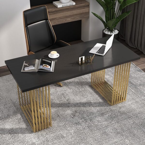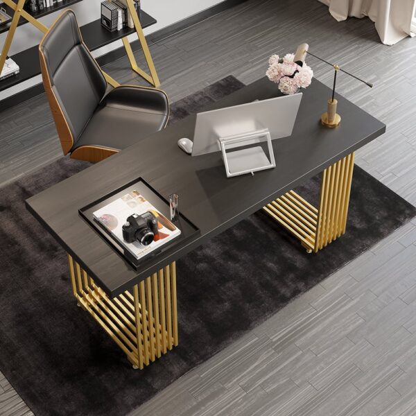 Modern 47.2″ Rectangular Home Office Desk with Solid Wood Top and Gold Frame