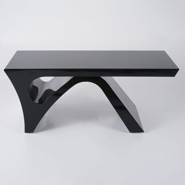 Upgrade your workspace with this sleek rectangular desk, combining modern aesthetics and durable engineered wood construction. The geometric pedestal base ensures rock-solid stability, while the glossy white finish resists stains and wipes clean easily. Perfect for home offices or workspaces, its curved edges and sculptural lines add a touch of contemporary elegance.
