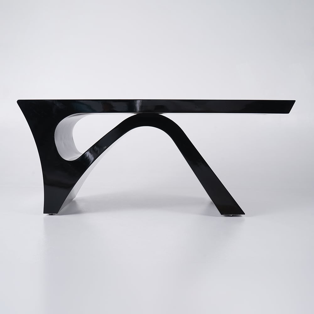 Upgrade your workspace with this sleek rectangular desk, combining modern aesthetics and durable engineered wood construction. The geometric pedestal base ensures rock-solid stability, while the glossy white finish resists stains and wipes clean easily. Perfect for home offices or workspaces, its curved edges and sculptural lines add a touch of contemporary elegance.